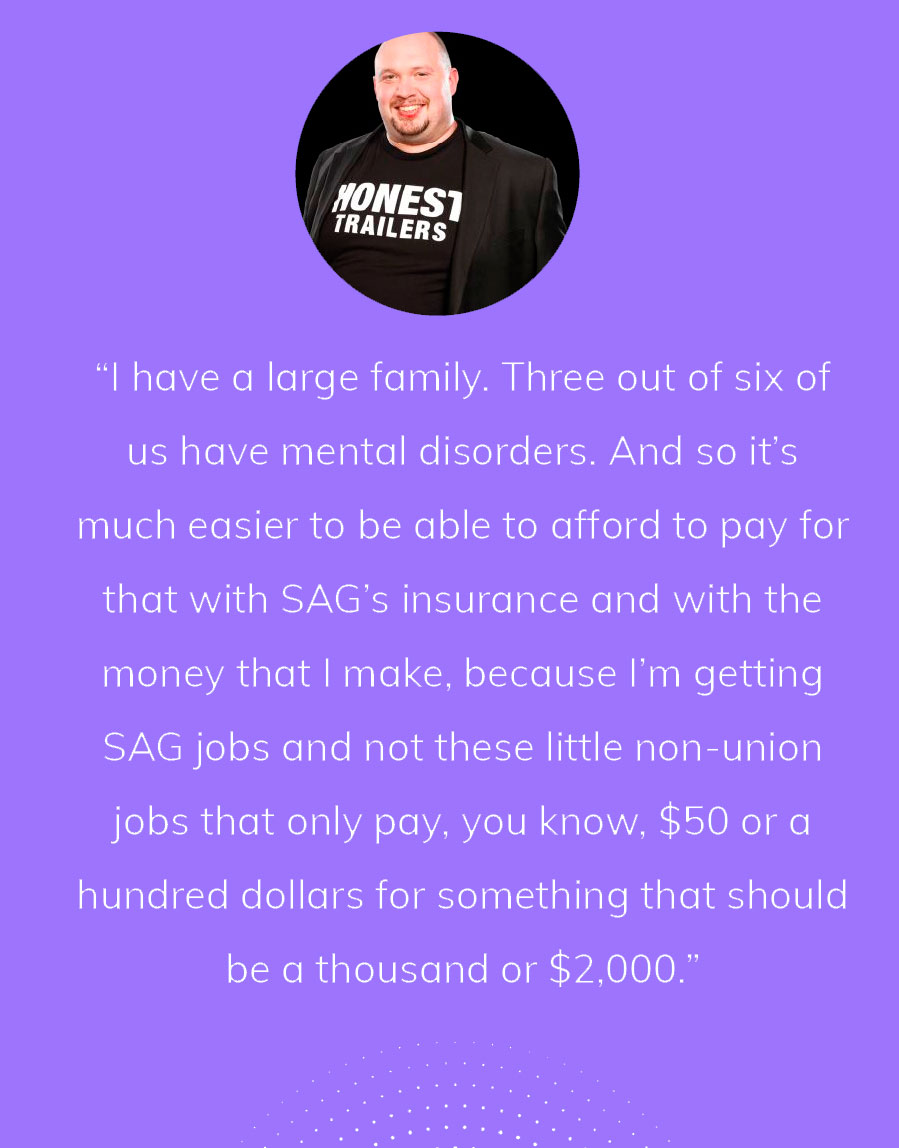 For voice actors, unions can offer work protections, such as being paid a fair rate within a reasonable amount of time, safe working conditions, and benefits like health insurance and pension.