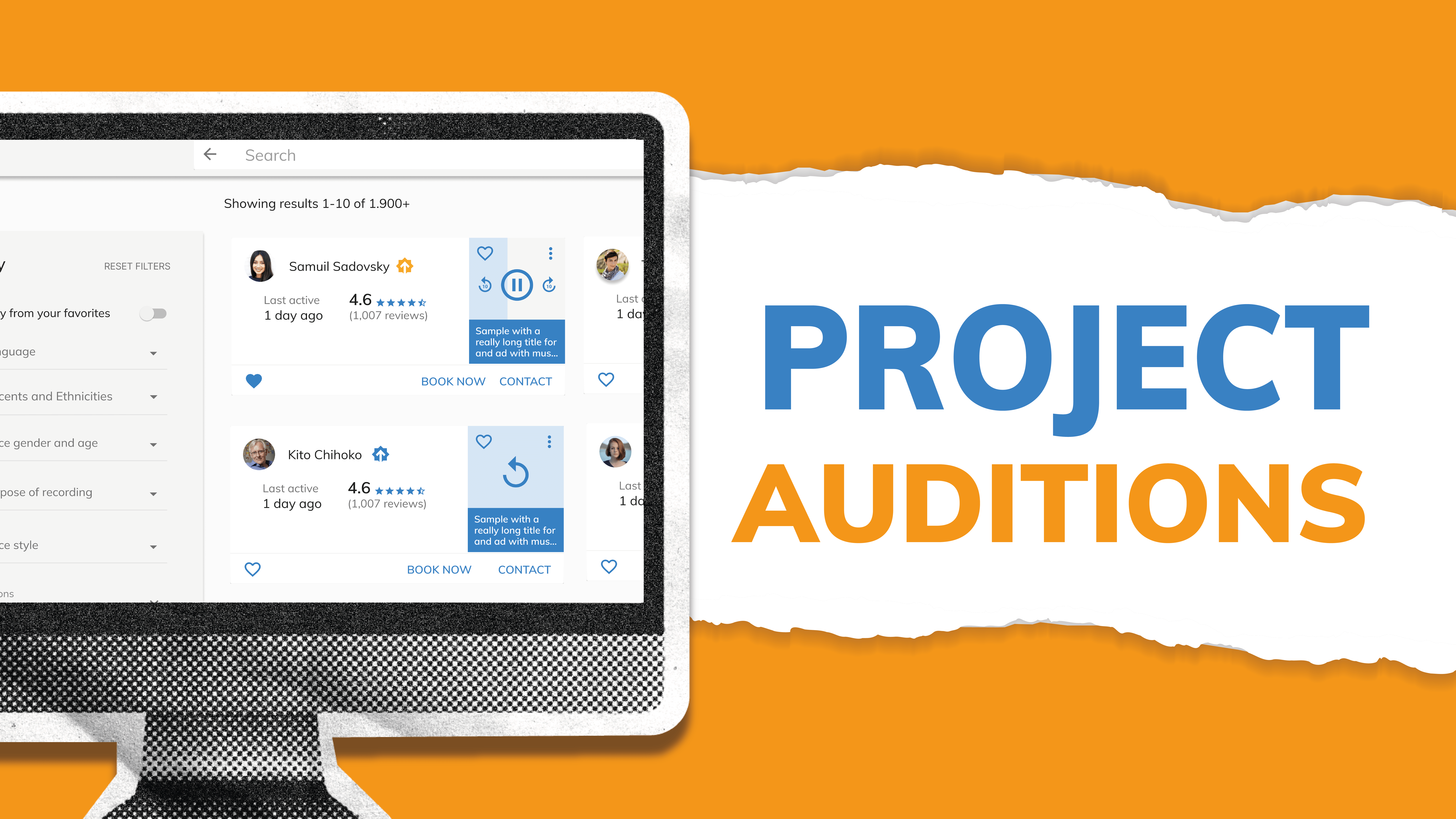 You can find a specific voice actor you hired before by using our search feature to enter the voice actor’s name or any keywords you remember from their profile.